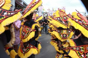 On Friday, various groups (barangay representatives, organizations, local business establishments, large corporations) paraded themselves to the loud beating of their respective drums. I stood in the middle of the intersecting street of the plaza where these parading groups would merge. There was frenzied dancing and shouting of “Viva Senor Santo Niño!” coming from all directions. Some groups in ati makeup and costume joined in the fun.