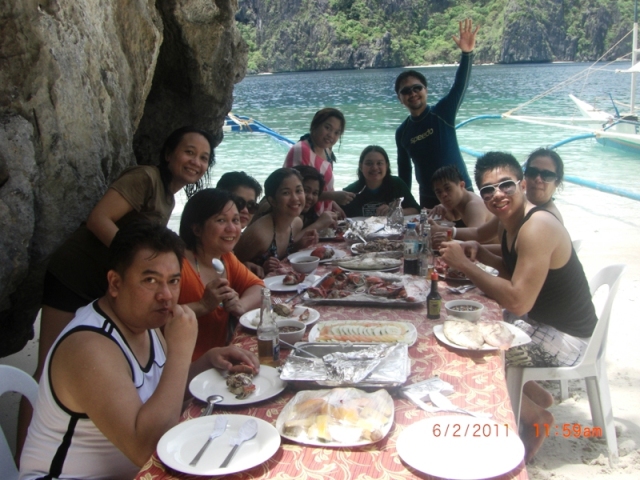 We next headed to Tapiutan Island where we went for more swimming and snorkeling (dipping for me). The others fed the fishes with bread that we brought along, as our guides set up our lunch by the stone walls. It was cholesterol overload from crabs and grilled pork and fish, to fruit varieties for cleansing. The heavy lunch slowed us down a bit, but gave us wide smiles that went all the way back to our loved ones left behind.