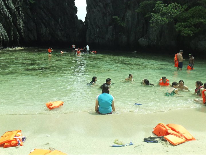 Our first stop, the Hidden Beach, was a pocket of crystal clear water surrounded by tall and sharp walls of limestone. Like little children set free to play, my companions quickly jumped into the alluring water to swim and snorkel. Not a skilled swimmer, I took my time taking pictures instead. Of course, I don’t want to be the killjoy of the group (considering we would all be bonding for five full days), so I went down the boat and took a dip. I tried to wade farther to where they were snorkeling, but I was barefoot. I believe that was where I got a cut from a coral on my left big toe.