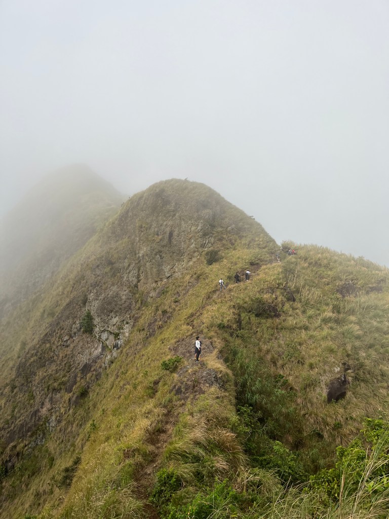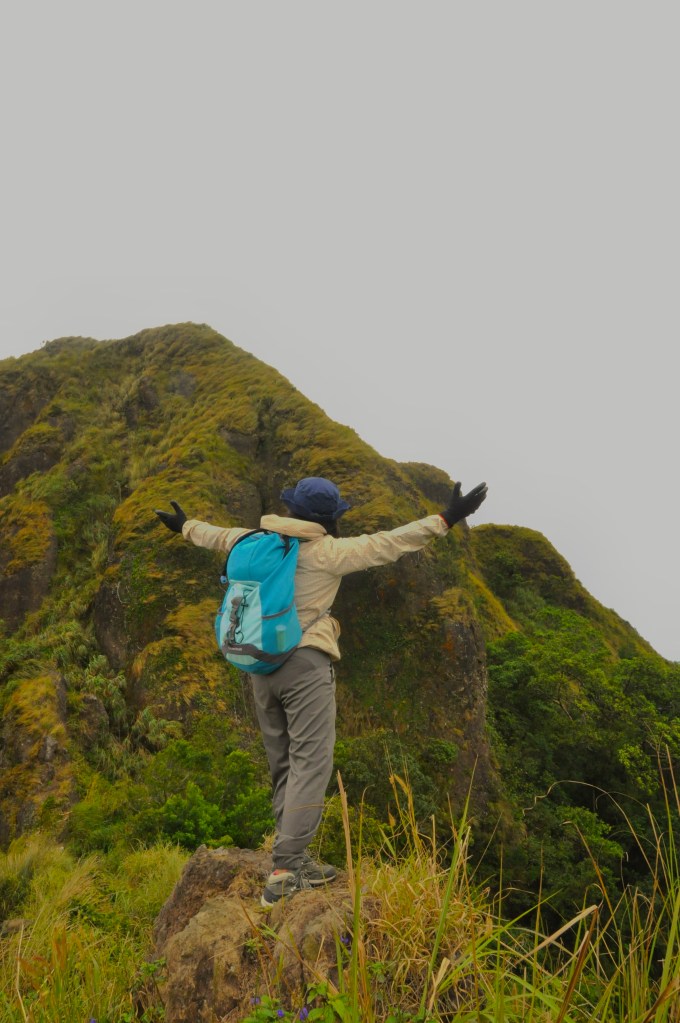 Indeed, the old trail was tougher, but a lot more fun! What made it tougher was the strong wind that hit us a few meters before the summit where the open trail got narrower onto a ridge. At some point, we had to crawl on all fours to avoid getting blown off the trail. We held on to the not-so-tall grasses that we can grab. On the rocky parts and steep ascents, we did some scrambling and rappelling on the way to the summit. We were screaming and laughing at ourselves, scared and thrilled at the same time. Unadulterated hiker’s high.