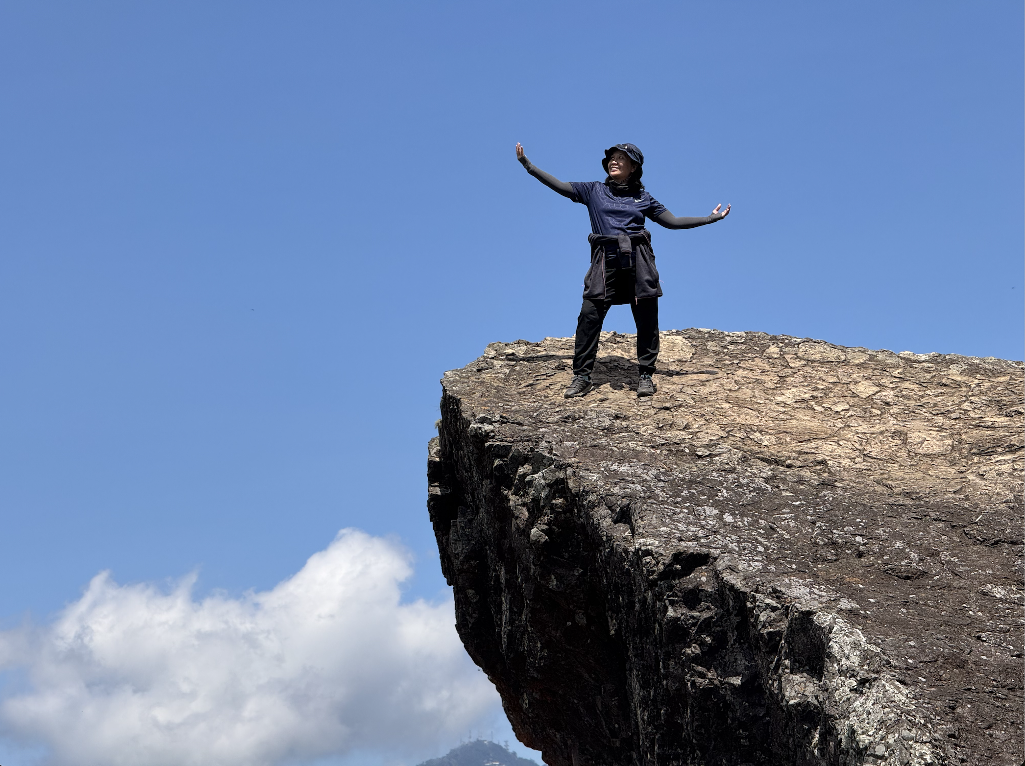 The climb was steep all the way. It was the first time for the other hiker, so I really felt her struggle. We had to make several stops to catch our breath, and by the time the summit came into view, I went ahead and did my own thing. It was running on pure adrenaline!